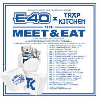Hip Hop's hottest chefs, Trap Kitchen hook up with the legend E-40 for a unique Meet & Eat Tour experience as part of the upcoming Gift Of Gab Tour. At each stop, 40 will be meeting his fans directly as they devour the latest and greatest from chefs Malachi "Chef Spank" and Roberto "Sous Chef News." With recent ventures in the liquor industry soaring E-40 has become quite the chef in his own right if you follow his updates on Instagram. Teaming up with the Trap Kitchen movement brings a never-before-seen experience where fans can get to know their favorite artist and also indulge in delicious plates provided by Spank and News. With cosigns from the entire industry including The Martha & Snoop Show, Vice, The Chew, Comedy Central's Hood Adjacent, The Breakfast Club, and many more the Trap Kitchen team has been taking their brand to new levels in 2018. Check the dates below and be sure to bring an appetite when E-40 and the Trap Kitchen fellas pull up to your city.
