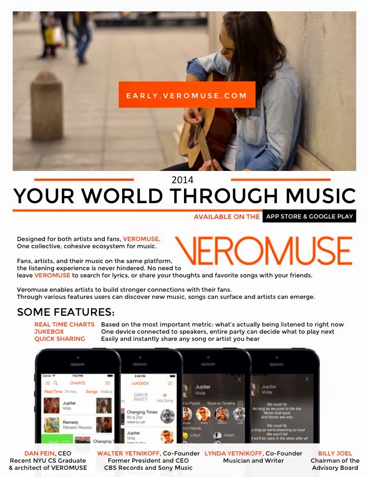 The founding team has brought together Walter Yetnikoff, the artist-centric music executive who ran Columbia and Epic Records' parent companies, CBS Records and Sony Music Entertainment for over 15 years, Billy Joel as head of our advisory board and the creative force of a team that is filling a void for artists and fans to truly interact easily for both discovering and promoting music.